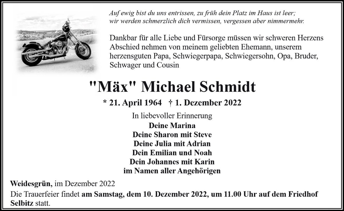 Michael "Mäx " Schmidtgestorben am 1. Dezember 2022